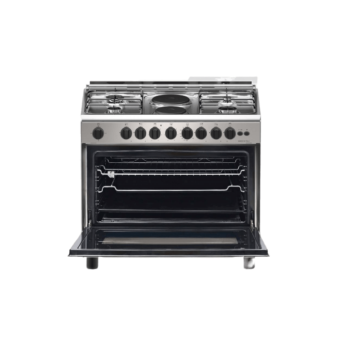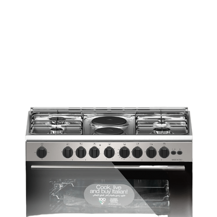 مواصفات فرن بومباني غاز و كهرباء 90*60 – أمان كامل – ستيل :