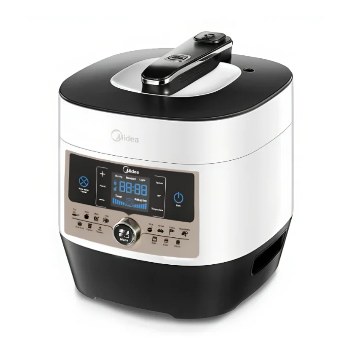 يتمتع قدر الضغط الكهربائي ميديا بتصميم عصري وأنيق مع سطح خارجي مصنوع من مواد عالية الجودة. كما يضمن لك جهاز الأمان المثالي بفضل مزايا الحماية المدمجة مثل إغلاق الأمان وتوزيع الضغط بشكل متوازن، مما يوفر لك راحة البال أثناء الطهي.