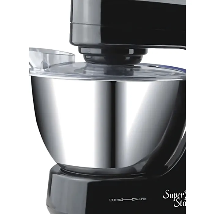 تتميز عجان كهرباء سوبر ستار بغطاء مزود بفتحة خاصة لتسهيل إضافة المكونات أثناء التشغيل، مما يسمح لك بإدخال المواد بشكل تدريجي وآمن دون الحاجة لإيقاف الجهاز. هذه الميزة الذكية توفر الوقت وتضمن خلطًا متجانسًا للمكونات، كما تعزز من سهولة الاستخدام وتمنحك تحكمًا أفضل أثناء تحضير العجائن والمخبوزات.