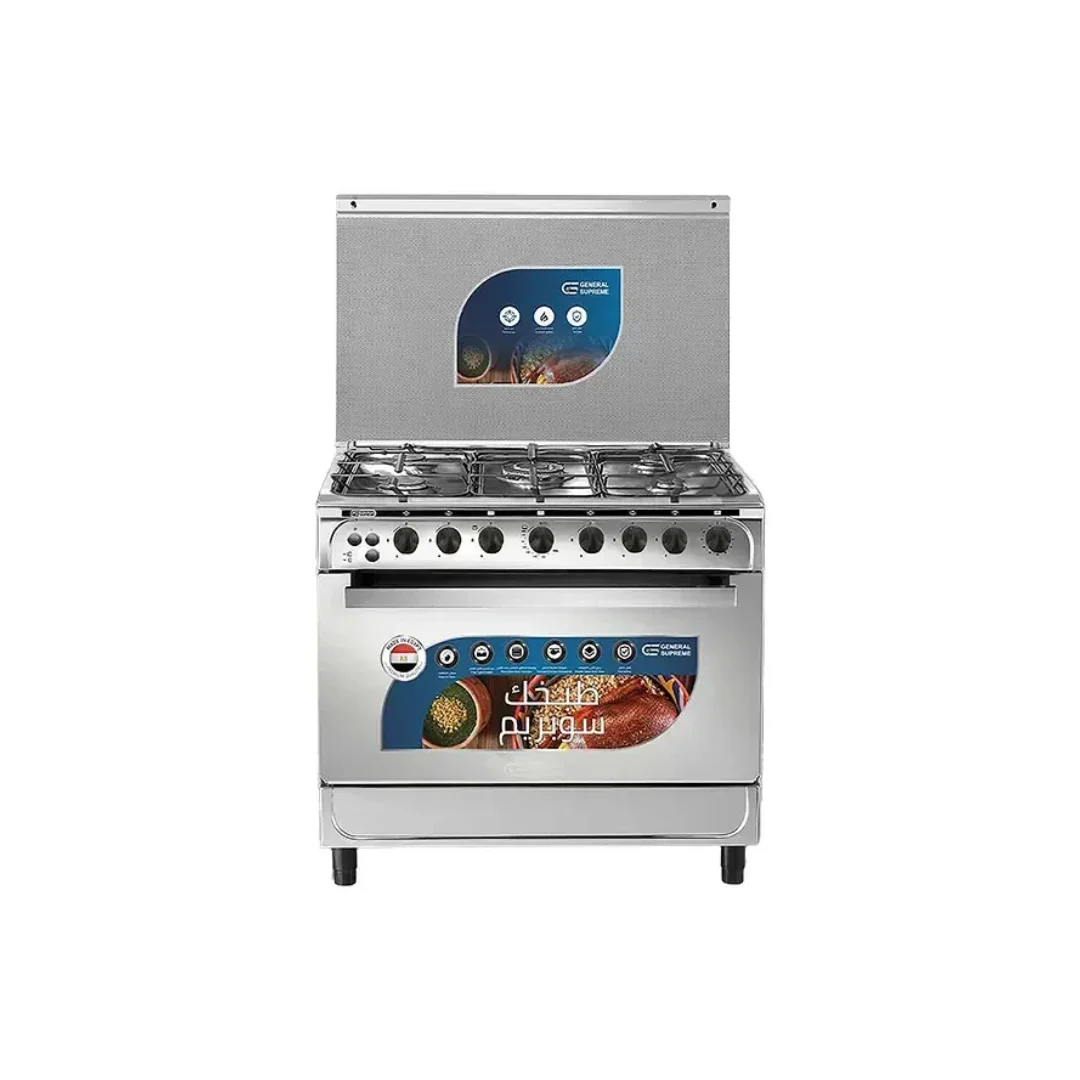 فرن غاز 5 عيون جنرال سوبريم 55*80 سم امان كامل – ستيل مصري |