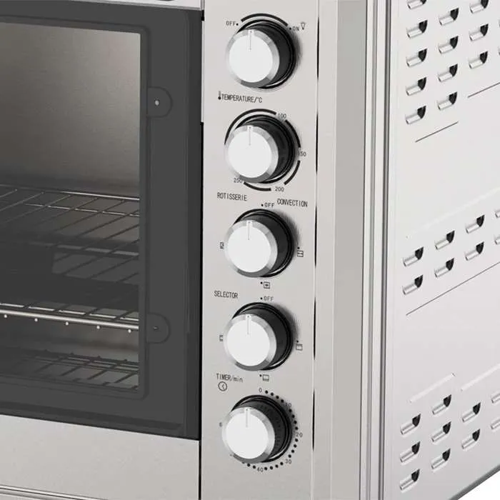 يتميز فرن كهربائي سعة ١٠٠ لتر ويننج ستار بـ هيكل من ستانلس ستيل متين، يوفر قوة ومتانة طويلة الأمد للاستخدام اليومي. هذا الهيكل لا يضمن فقط ثبات الجهاز ومقاومته للتآكل، بل يسهل أيضًا تنظيفه ويحافظ على مظهره الأنيق، مما يجمع بين العملية والجمال في مطبخك.