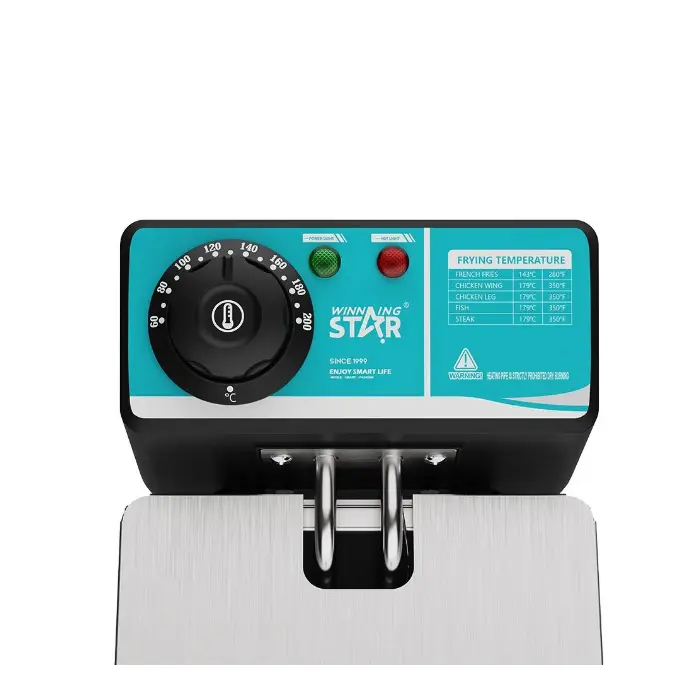 تتميز قلاية زيت عميقة ويننج ستار بأدوات تحكم دقيقة في درجة الحرارة تتيح ضبطها بسهولة ضمن نطاق 60 إلى 200 درجة مئوية، مما يمنحك تحكمًا كاملًا في عملية القلي حسب نوع الطعام. يساعد هذا النظام على الحفاظ على حرارة ثابتة أثناء التشغيل، لضمان طهي متجانس وقوام مثالي مع تقليل امتصاص الزيت ومنع الاحتراق، مما يجعل القلاية مثالية للاستخدام المنزلي والاحترافي على حدٍ سواء.
