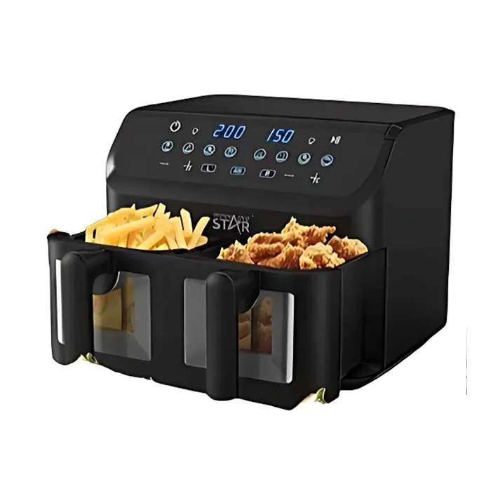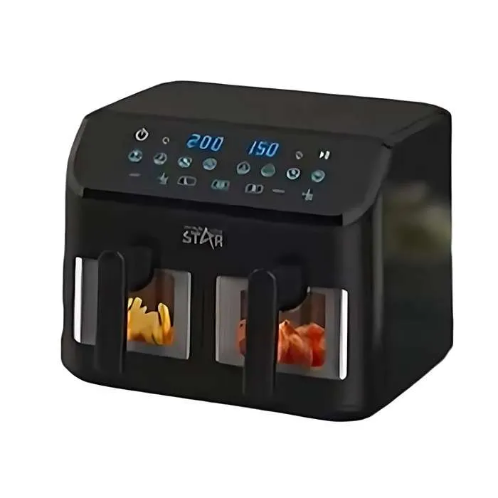 استمتعي بتحضير وجباتك المفضلة بسرعة وكفاءة مع قلاية ويننج ستار المزدوجة بقوة 2000 وات، التي تمنحك تسخينًا سريعًا ونتائج مقرمشة بدون الحاجة لاستخدام كميات كبيرة من الزيت. بفضل التصميم المزدوج، يمكنك طهي صنفين مختلفين في نفس الوقت مع تحكم مستقل لكل سلة، مما يوفر الوقت ويجعلها مثالية للعائلات الكبيرة.
