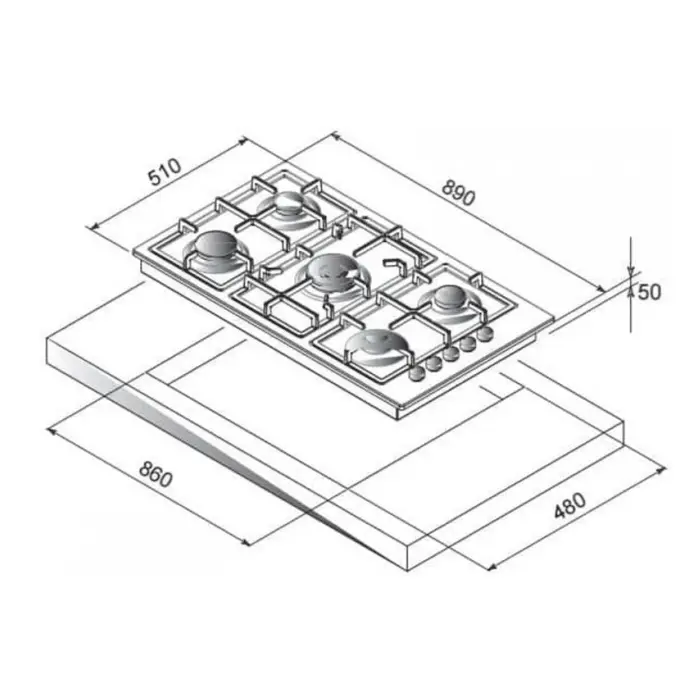 مسطح غاز بلت ان ماستر جاز 90 سم 5 شعلات – ايطالي H95GLCX